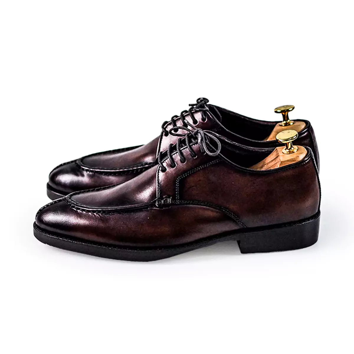The Norwegian Derby features a distinctive apron toe with elegant stitching that adds depth and character to the design. The deep brown patina brings a classic yet sophisticated look, while the lace-up closure ensures a secure and comfortable fit. These shoes are handcrafted to provide superior durability, making them a long-lasting addition to your collection.